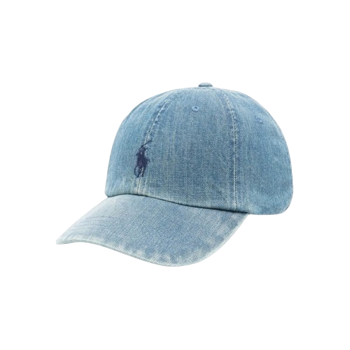 Light Blue denim baseball cap with embroidered logo from Polo Ralph Lauren.