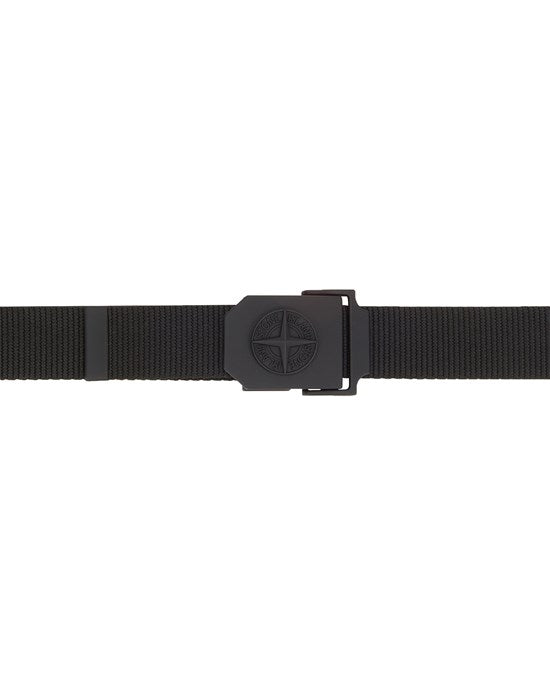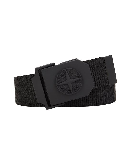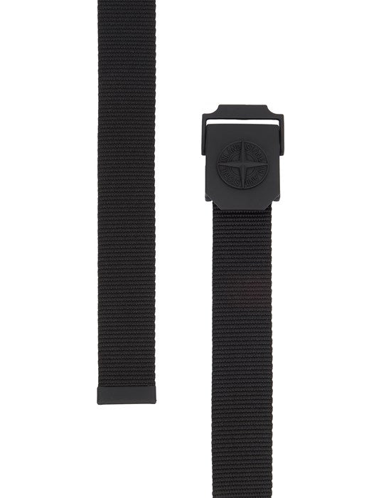 Black nylon belt from Stone Island with ring buckle in painted or matt metal