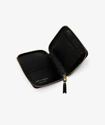 Mini black wallet from Comme des Garcons Wallet, in leather, zip closure, five internal pockets and internal coin purse.