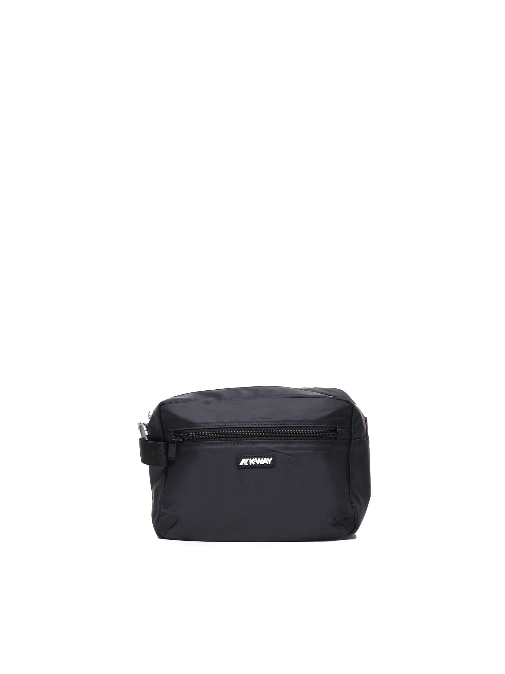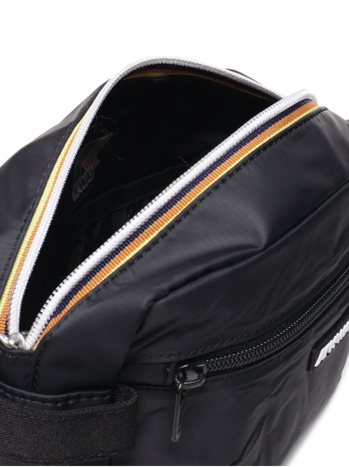 Black Demu bag from K-Way,waterproof, water-repellent, windproof ripstop fabric, side handle in 2 mm tape, main opening with K-Way zip, front pocket with zip, multifunctional internal compartments, white silicone logo