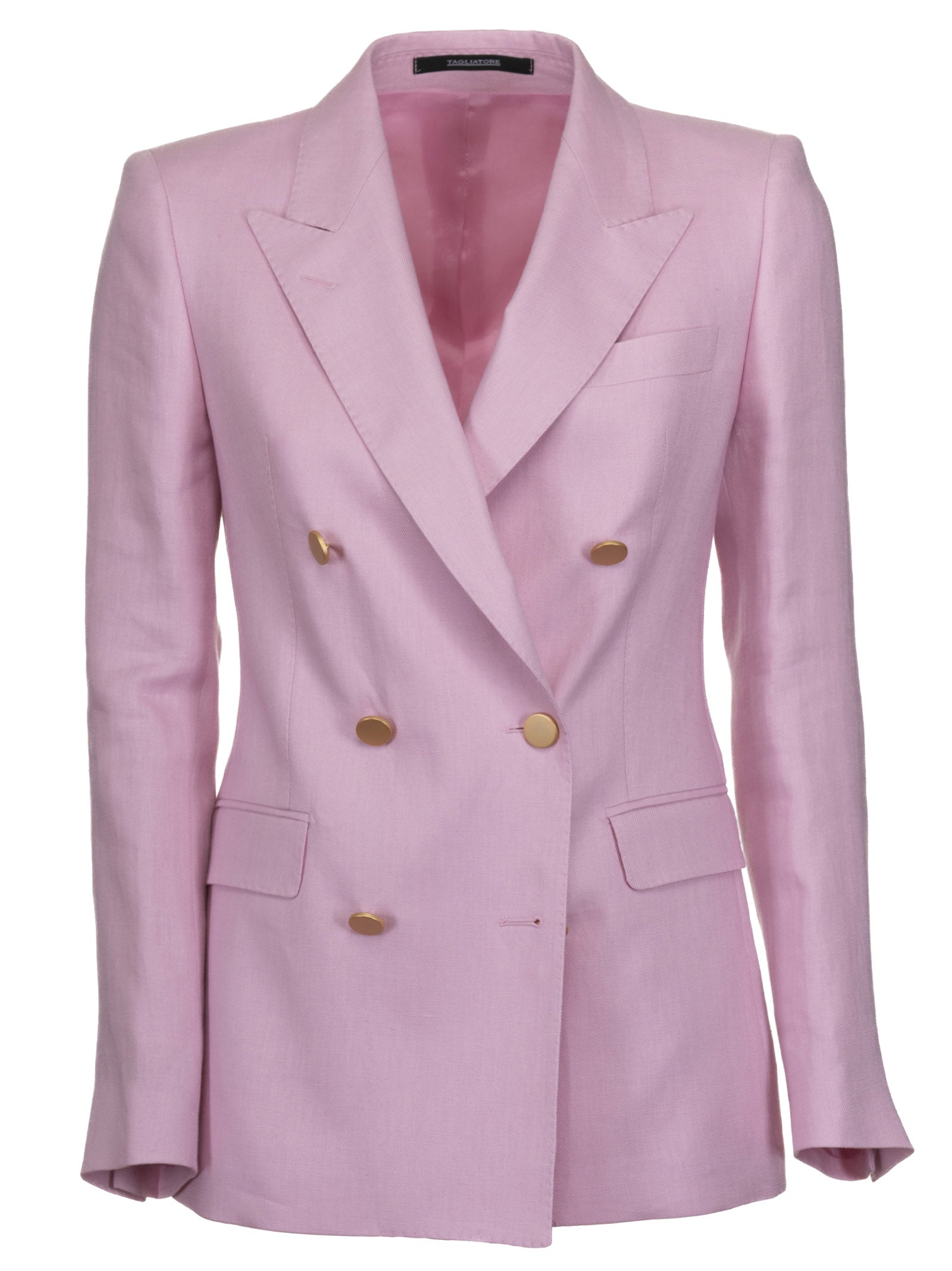 Pink double-breasted blazer with gold botton from Tagliatore.