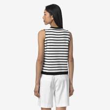 White and black stripes Geri  vest from K-Way, with a classic, regular-fit silhouette, made from pure Egyptian cotton with a soft, smooth, anti-pilling yarn. This lightweight vest features a timeless crew-neck design with a striped pattern, modernised by a slightly cropped, feminine cut.