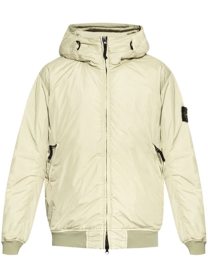 Beige jacket with hood, zip closure and "Primaloft" padding from Stone Island.