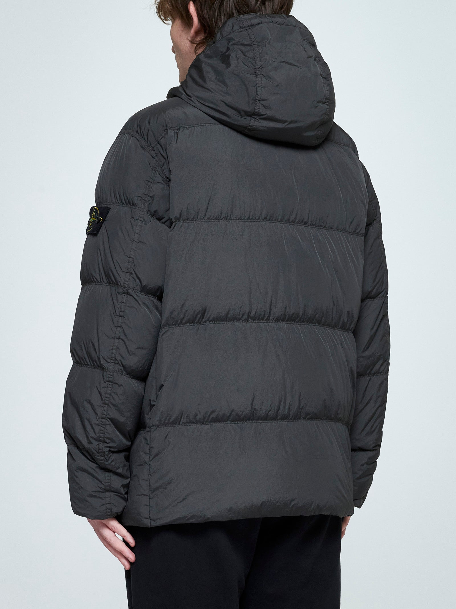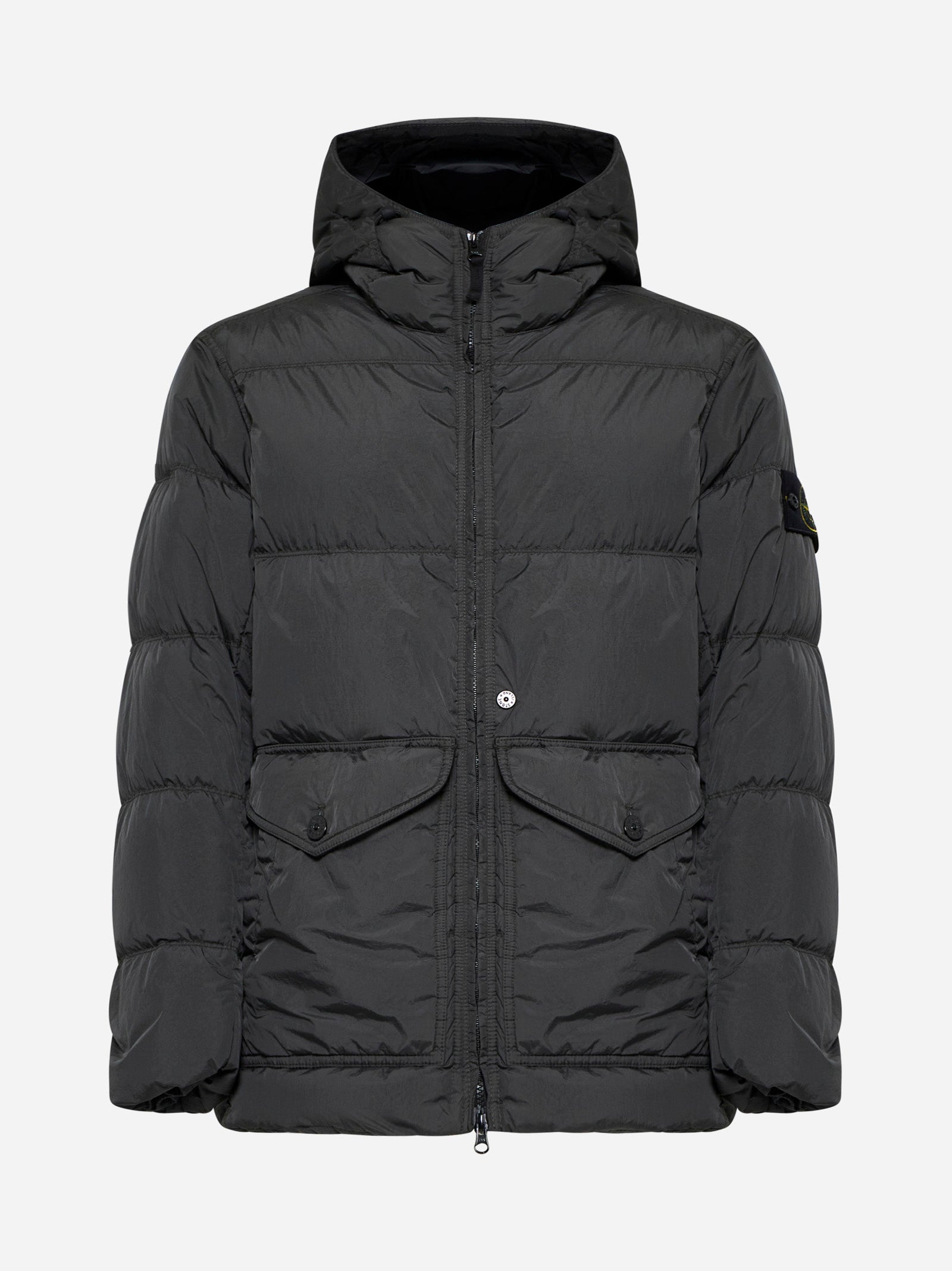Dark Grey down jacket with hood, two frontal pockets and zip closure from Stone Island.