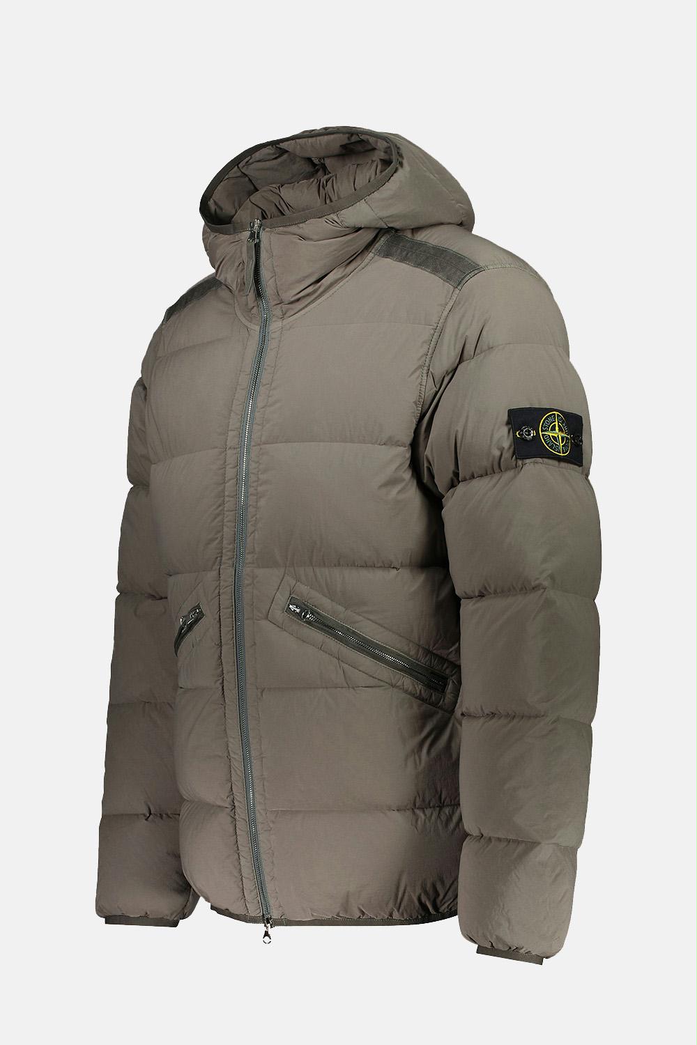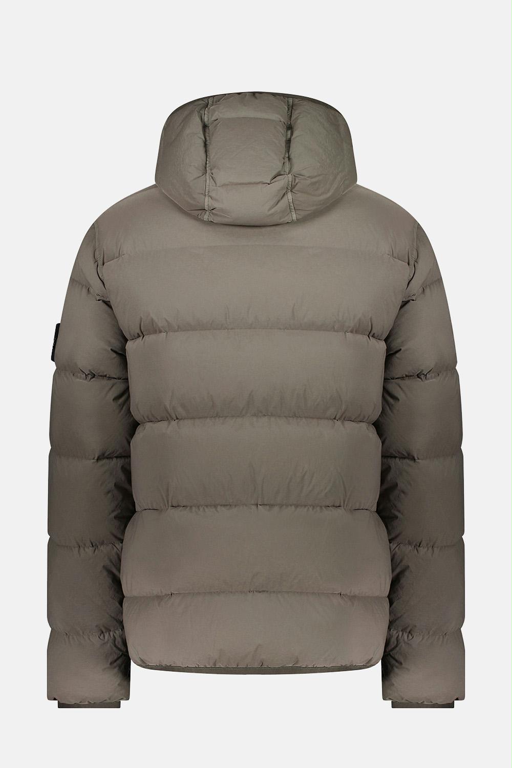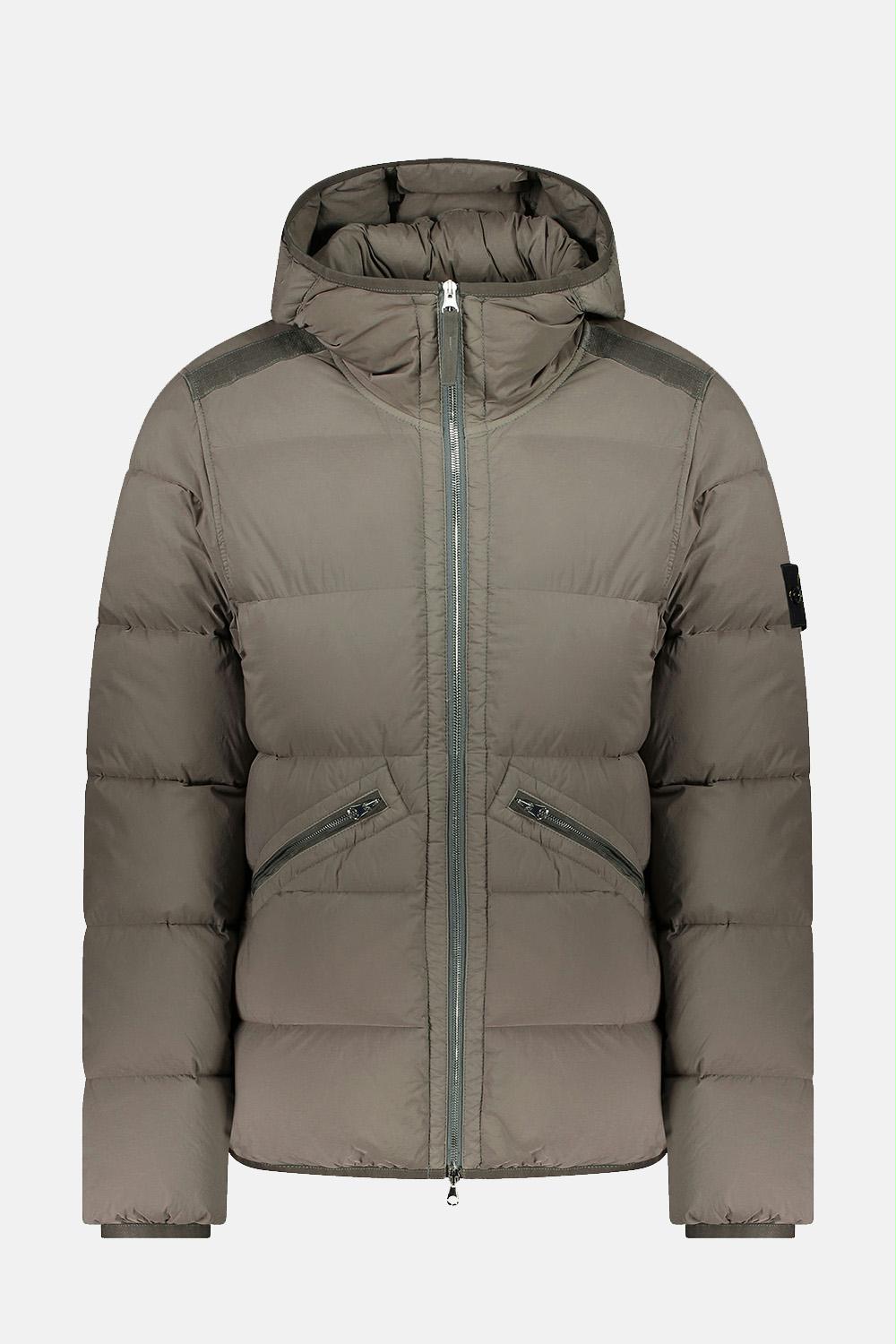 Brown Polyamide Jacket from Stone Island. Brown tech fabric, quilted pattern, down and feather-filled, hooded, two-way zip closure on the front, zipper pockets on the front, logo patch on the sleeves, tonal trims.