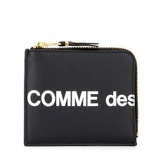Mini black wallet from Comme des Garcons Wallet, in leather, zip closure, contrasting logo in the center.