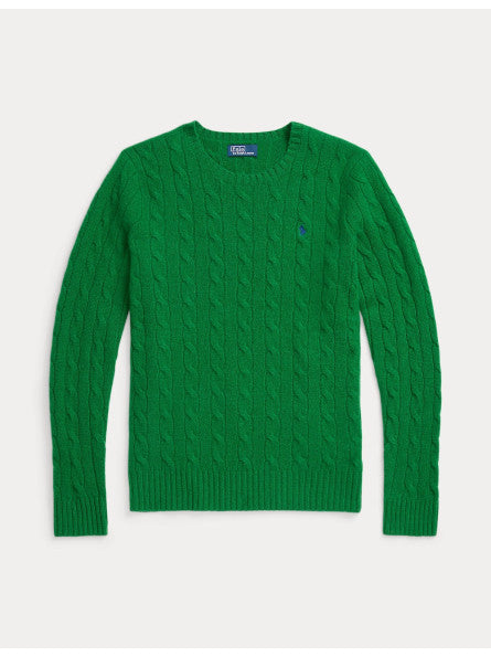 Green Grass cable sweater with small frontal logo from Polo Ralph Lauren.