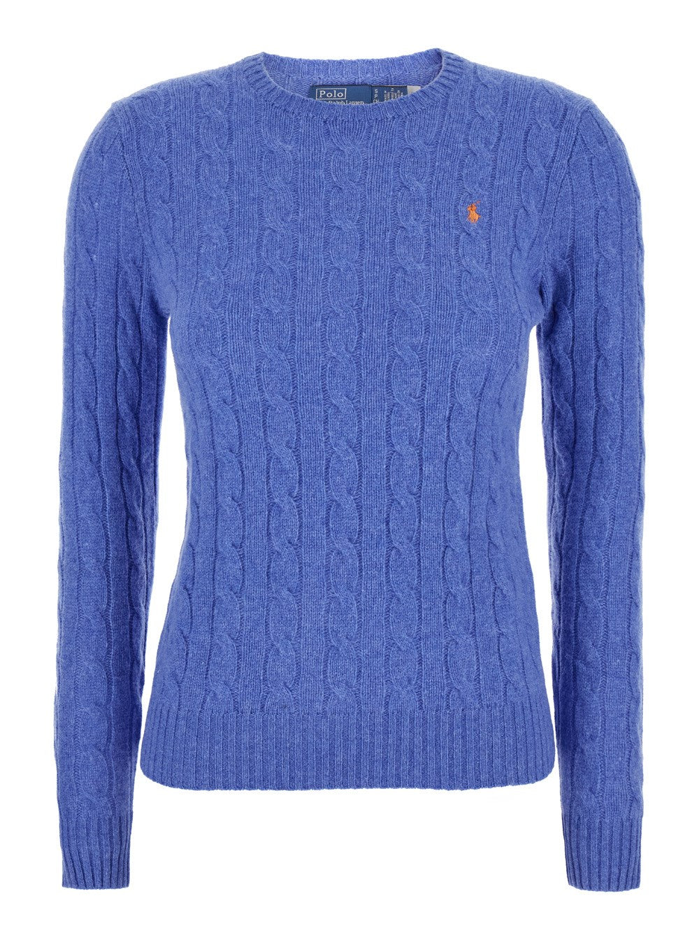 Dockside Blue Heather cable sweater with small frontal logo from Polo Ralph Lauren.
