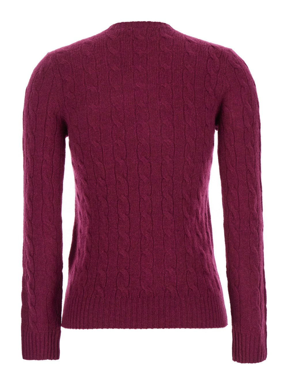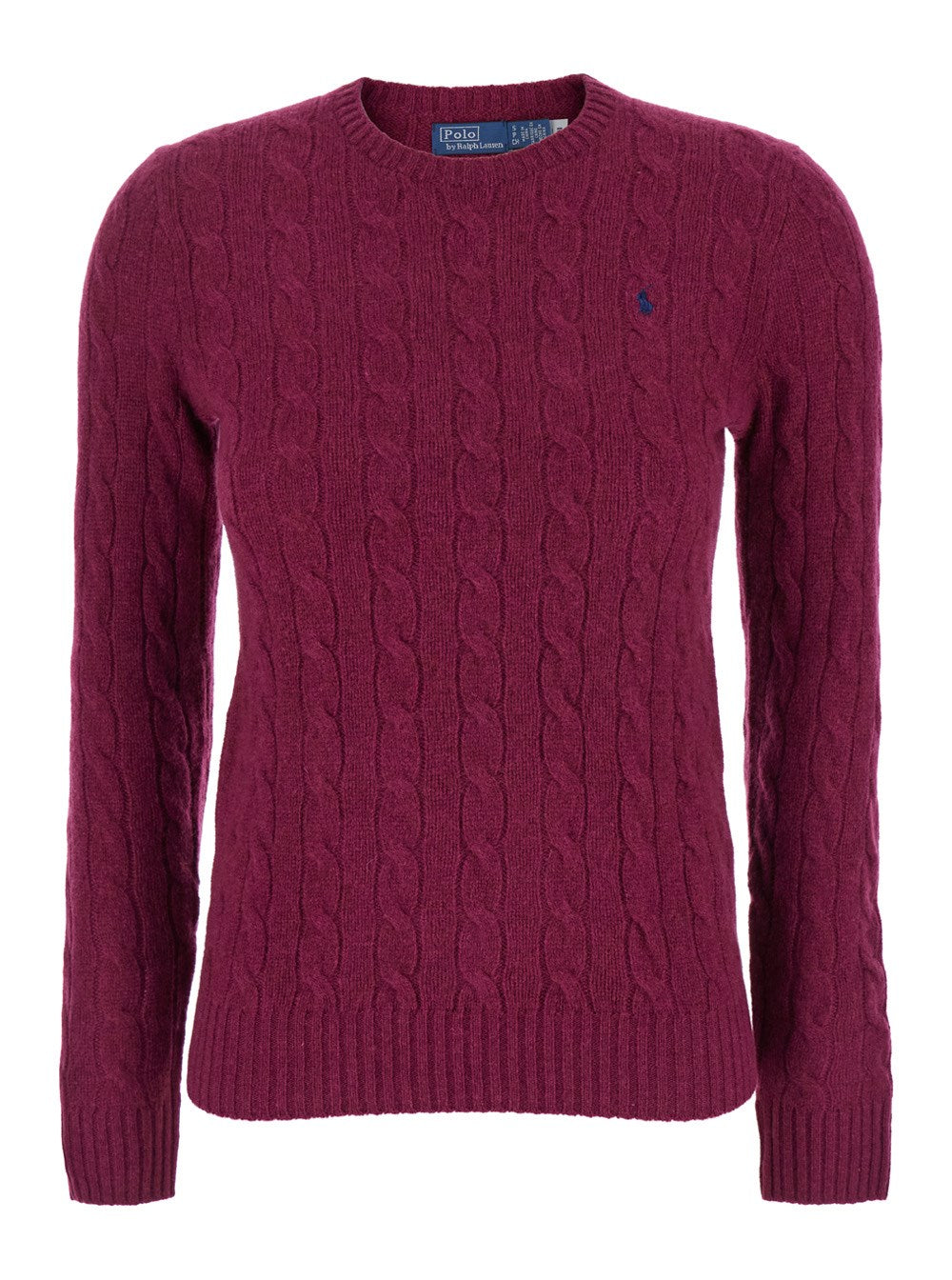 Plum cable sweater with small frontal logo from Polo Ralph Lauren.