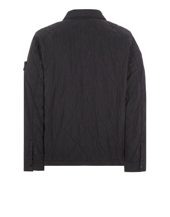 50 fili garment dyed black shirt jacket from Stone Island, quilted fabric with a layer of internal padding,patch pocket on the chest with a flap and button closure,double slider zip closure.