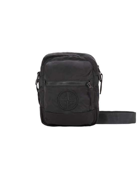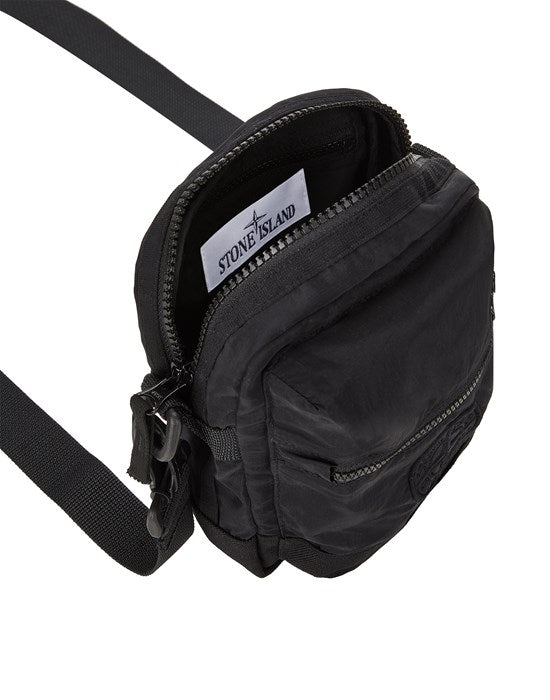 Black pouch from Stone Island,zip closure and removable shoulder strap.