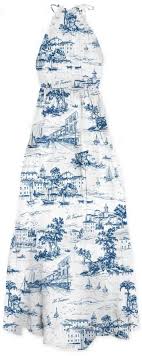 Maryam long dress by MC2 St.Barth, made of cotton, all-over print on a white base, halterneck, elastic waistband, long flounced skirt.