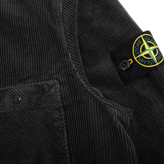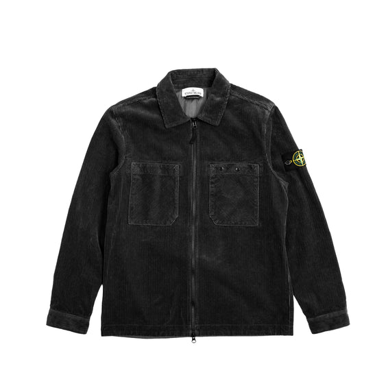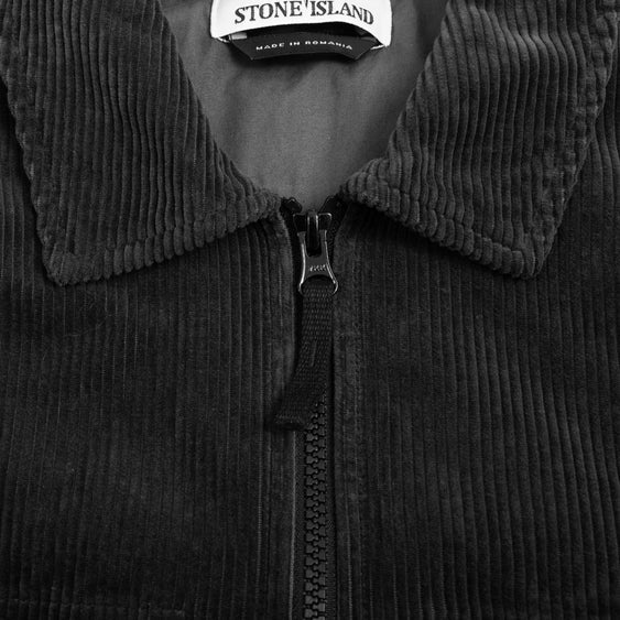 Black Corduroy overshirt from Stone Island,with snaps at cuffs,Round Bottom Line and two-way zip fastening