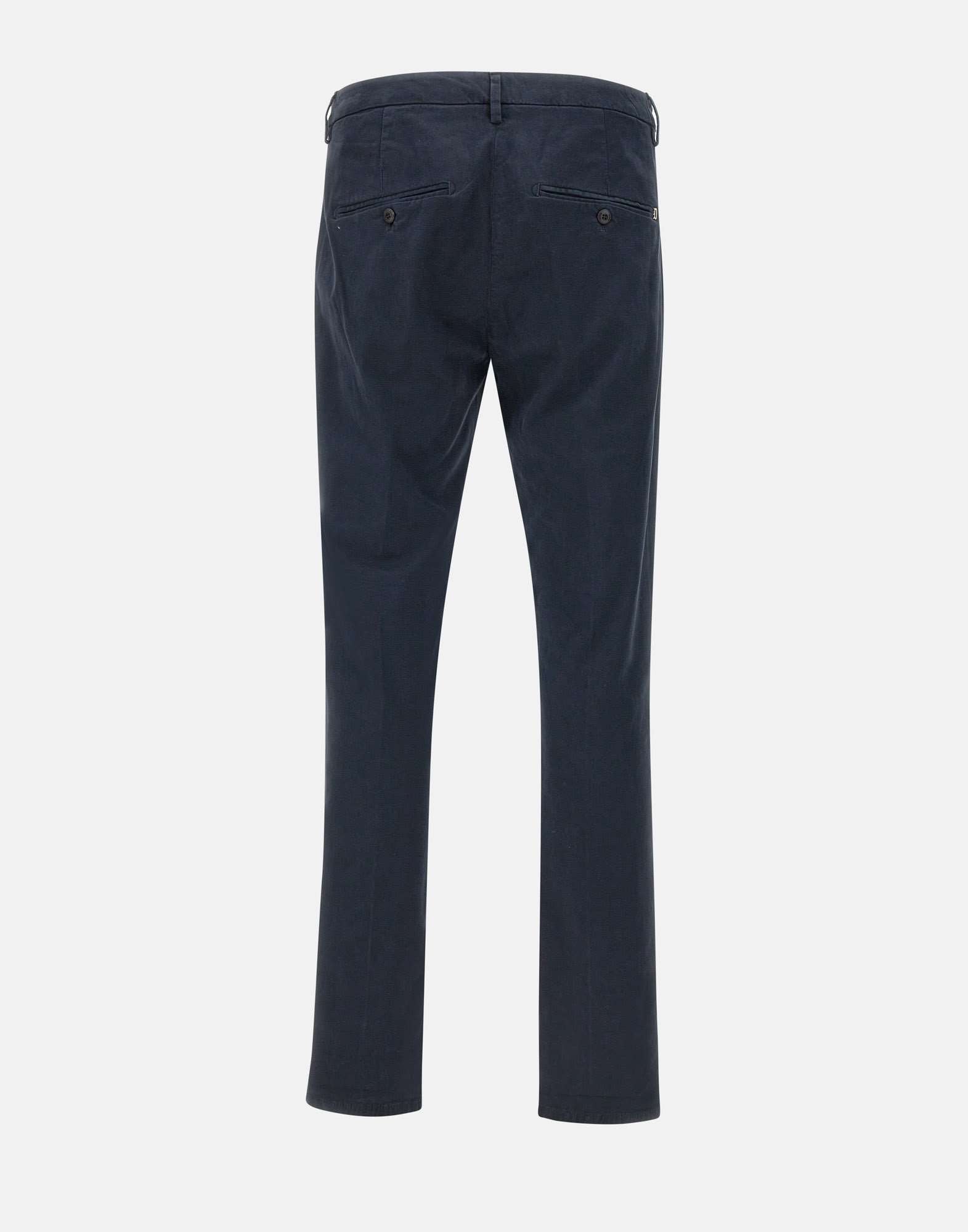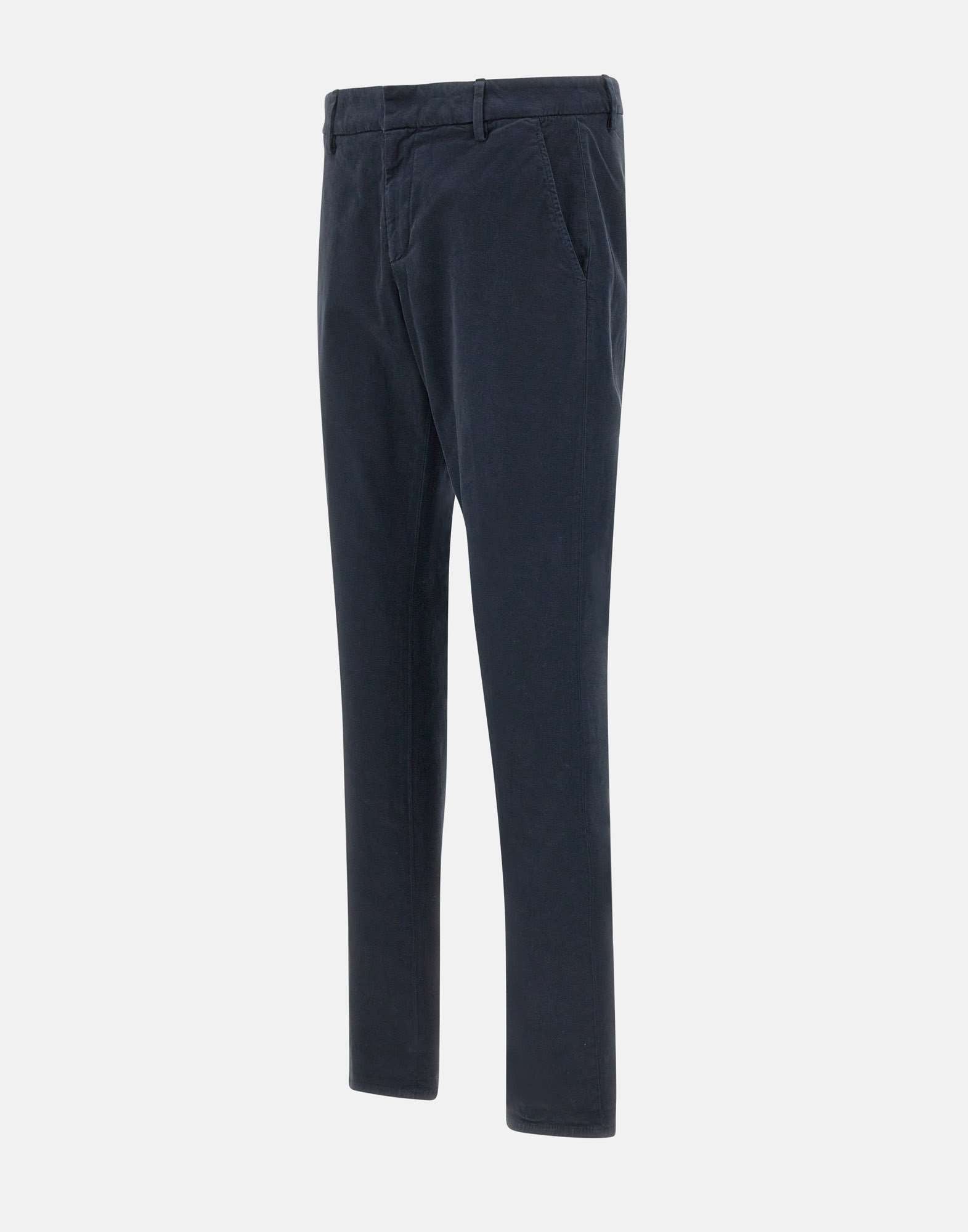 Blue "Gaubert" men's trousers in stretch cotton from DonDup, super soft and comfortable peached fabric, side welt pockets, back pockets with button, zip and button fastening, waist with belt loops, straight leg, mini metal D logo on the back.