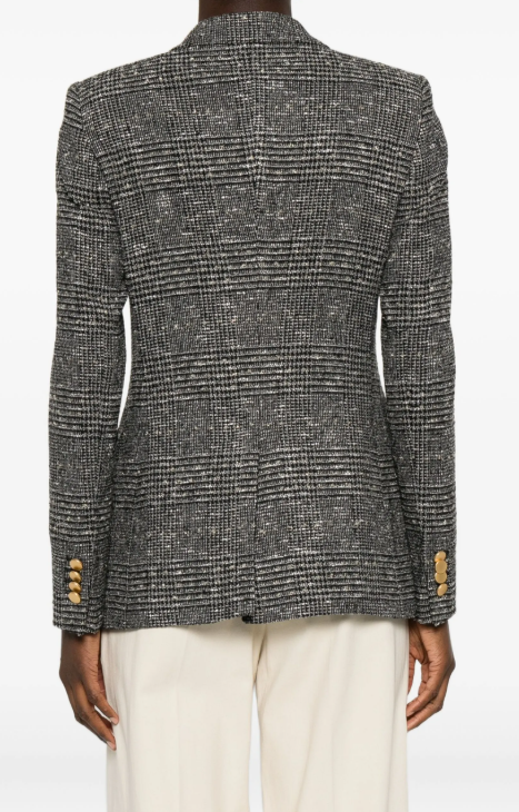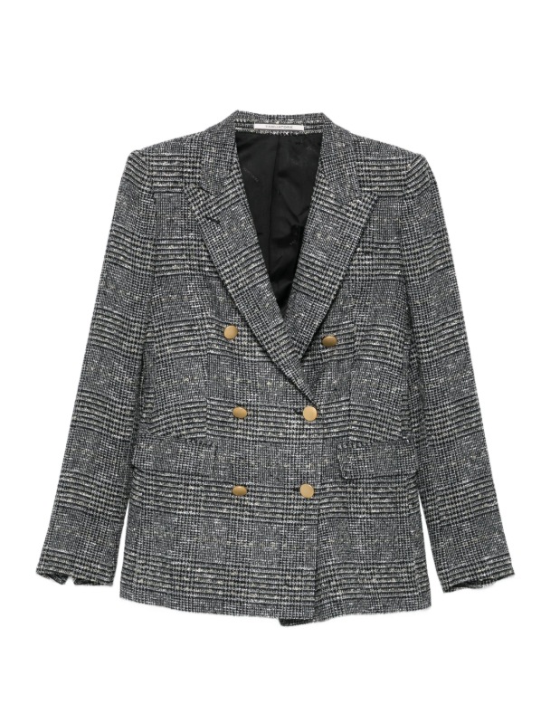 Tagliatore Paris double-breasted checked blazer, long sleeves, fabric with gold lurex details, gold buttons, peak lapels