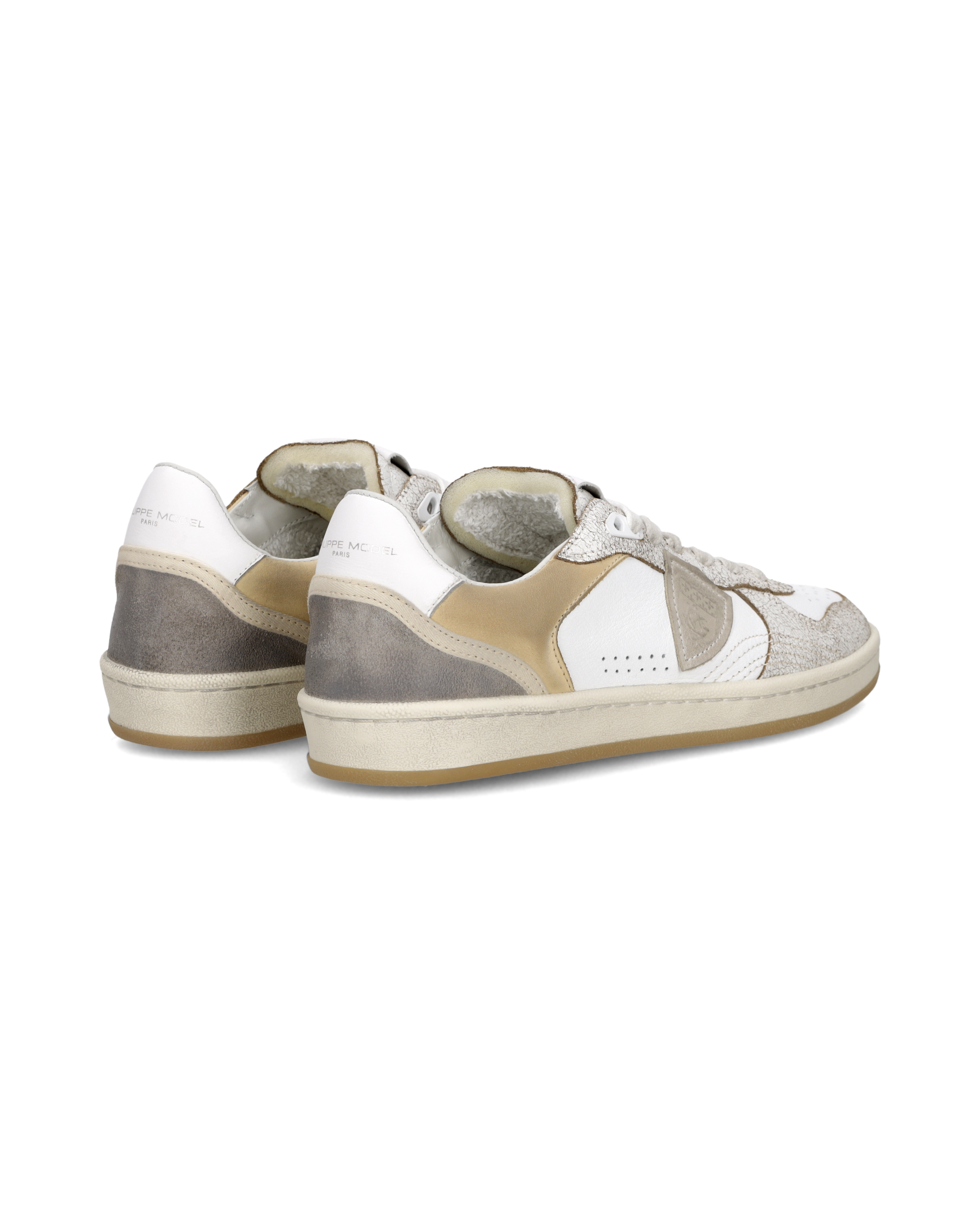 Low PGAL sneaker by Philippe Model, inspired by the iconic vintage basketball courts, calfskin upper and suede details, white back patch, leather-covered polyurethane foam insole, cotton sponge lining, personalized rubber sole. Regular fit Sole: 2 CM Composition: 80% CALF LEATHER - 20% GOAT LEATHER Made in Eu