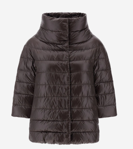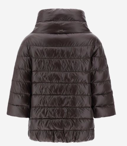 Brown Three-quarter-length cape with an unmistakable style from Herno, crafted from iconic Ultralight Nylon, the most authentic expression of Herno style. This exclusive technology features 20-denier Japanese nylon and premium 90/10 down injected into the fabric for an even lighter feel. The result is excellent water resistance with a particularly luxurious, silky feel.