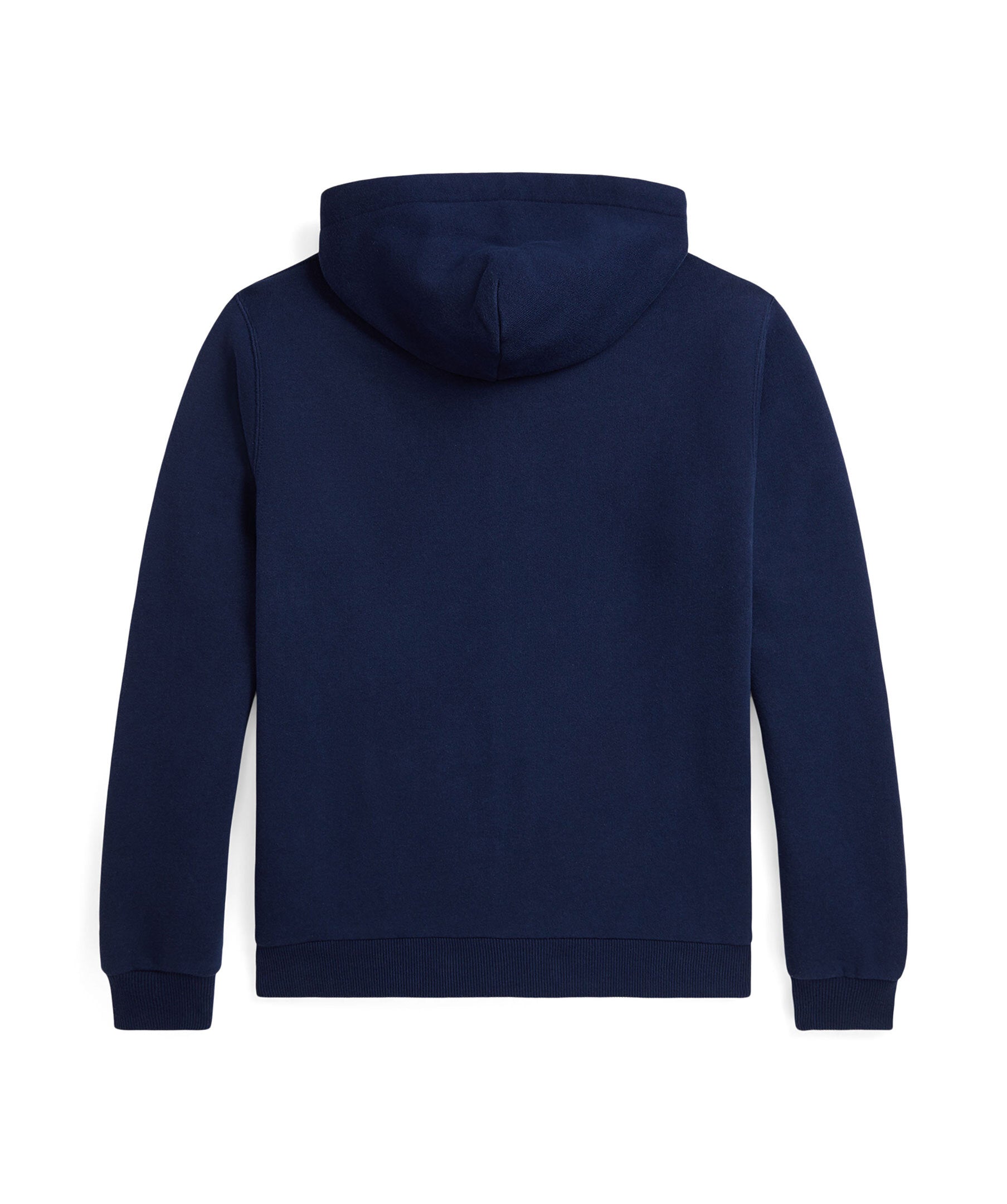 Polo Ralph Lauren blue full-zip hoodie, long sleeves, ribbed cuffs and hem, zip closure, adjustable drawstring hood, embroidered logo on the chest.