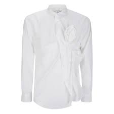 White shirt from Comme des Garcons Shirt, long sleeves and roses applied on the chest.