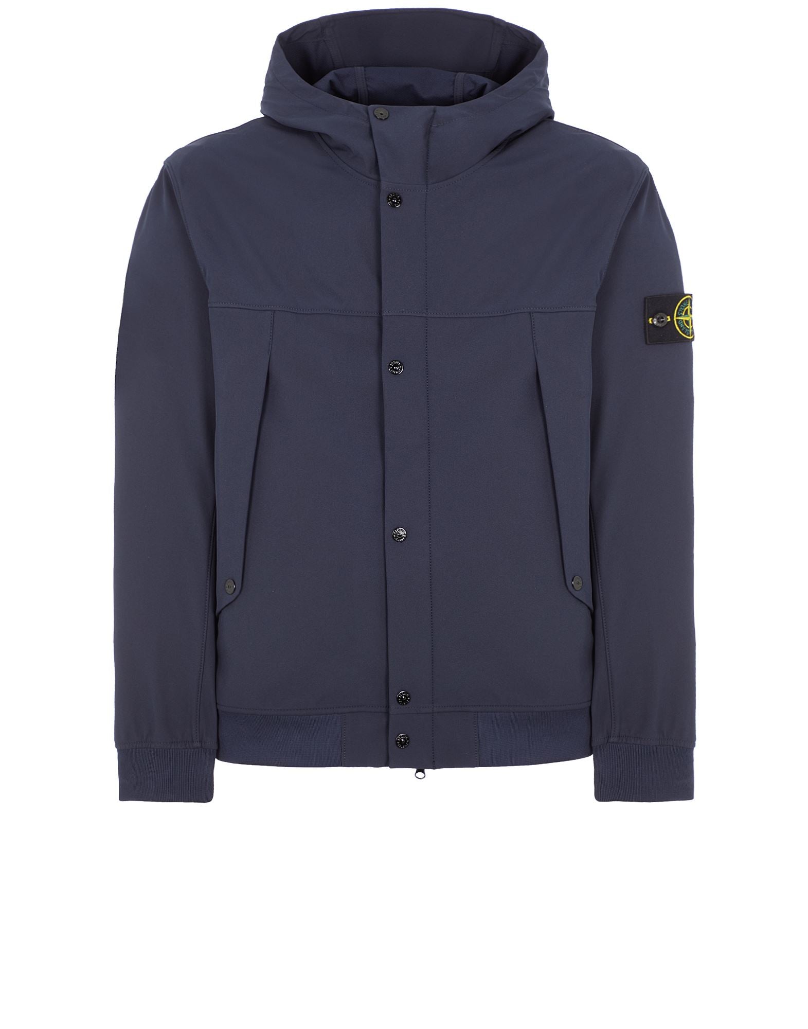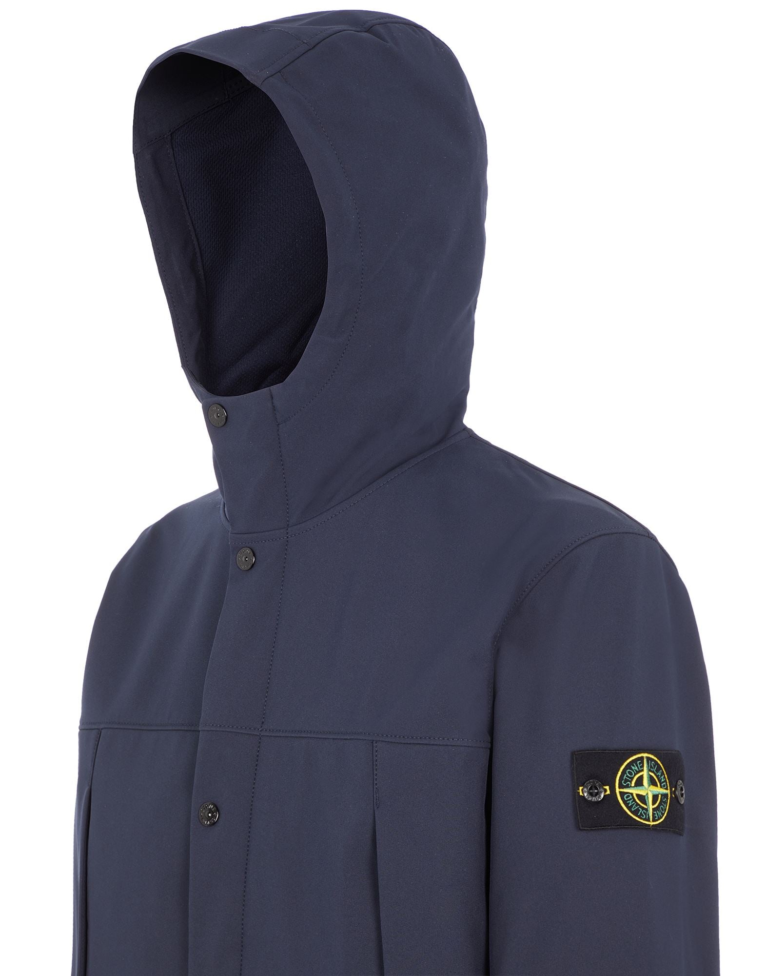 Blue hooded jacket in Shell fabbric with frontal pocket from Stone Island.