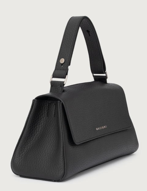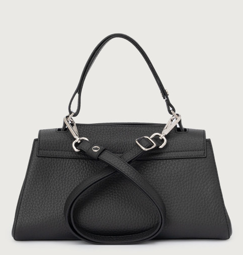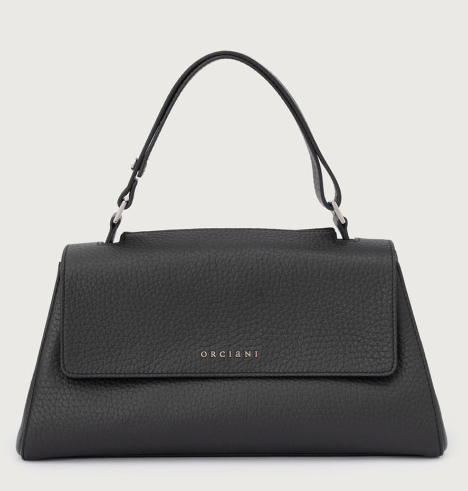 Black Sveva Longuette bag by Orciani, crafted from Soft, a versatile and contemporary leather that complements the Orciani collections, is a timeless icon. Featuring three interior pockets, one with a zipper, it offers uncompromising practicality. The flap closure with magnetic button seamlessly integrates into the design, while the concealed opening at the top of the flap adds a touch of modernity.