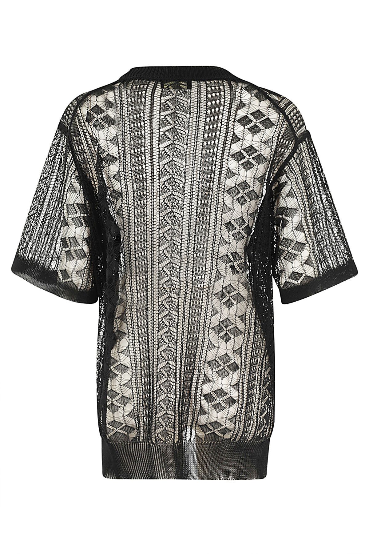 Crew-neck sweater with short perforated sleeves from Roberto Collina.