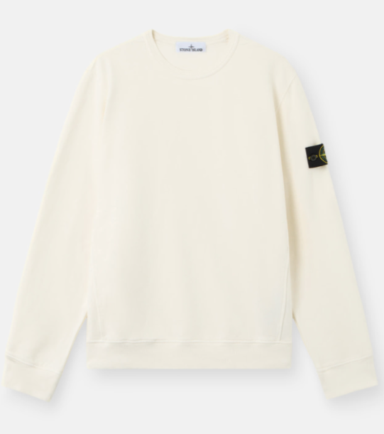 White crewneck sweatshirt in brushed organic cotton from Stone Island, garment-dyed, ribbed neckline, ribbed triangular inserts on the shoulders and sides, Stone Island badge on the left sleeve, and elasticated ribbed cuffs and hem.