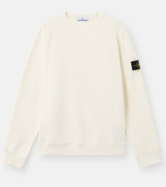 Ivory crewneck sweatshirt in brushed organic cotton from Stone Island, garment-dyed, ribbed neckline, ribbed triangular inserts on the shoulders and sides, Stone Island badge on the left sleeve, and elasticated ribbed cuffs and hem.