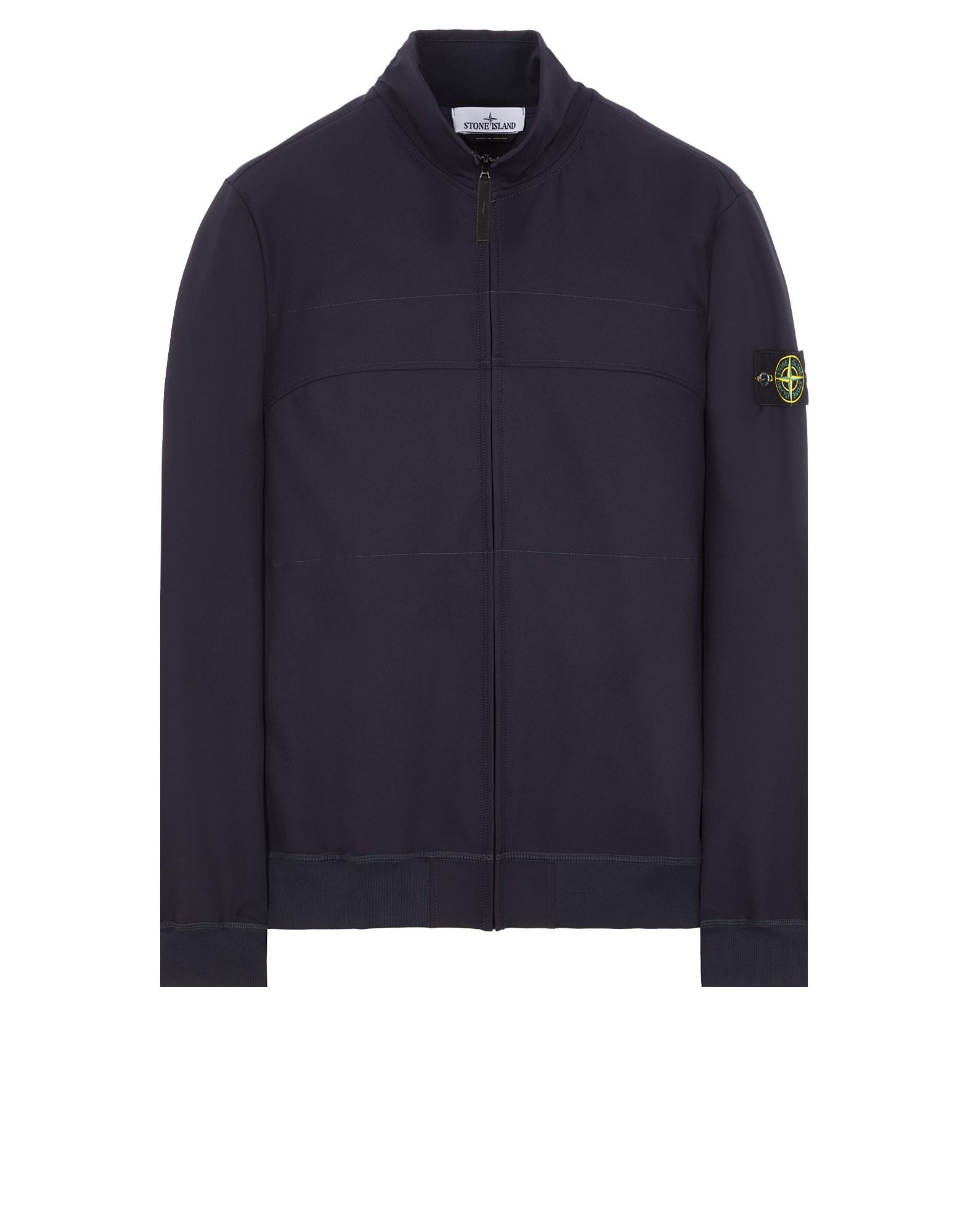 Navy blue jacket with zip closure in technical stretch nylon fleece from Stone Island.