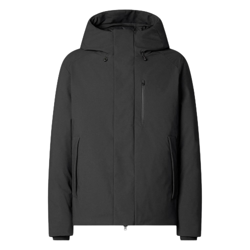 Black hooded jacket with adjustable drawstring at the hem from Save The Duck.